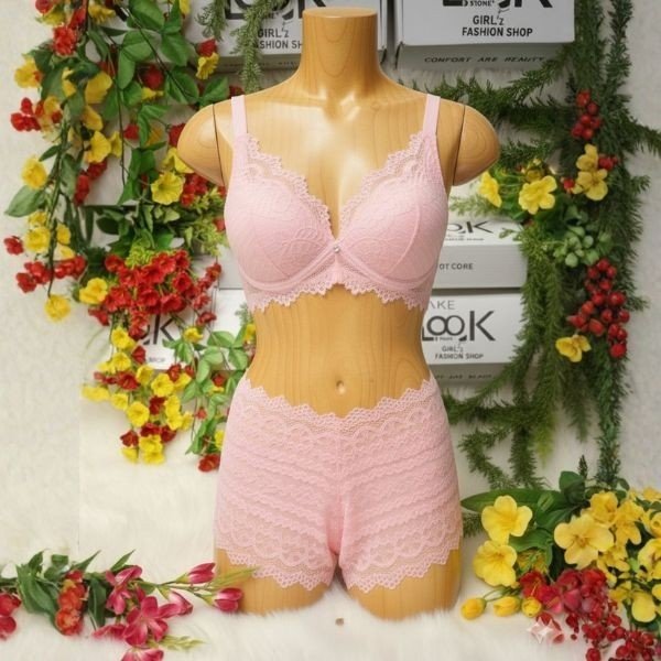 🖤 ৩পিস লেইস প্যাডেড ব্রার সাথে থাকছে ৩পিস ম্যাচিং ফ্লোরাল নেট পেন্টি।